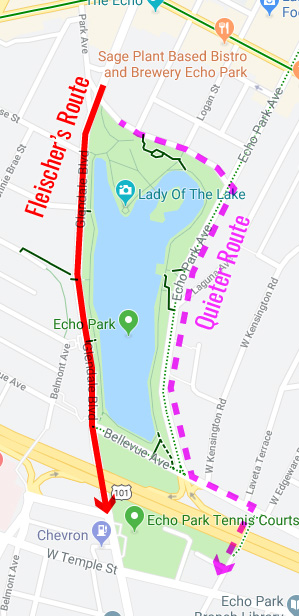 For example, here’s an excellent 360° video by Matthew Fleischer of the L.A. Times highlighting the dangers a cyclist goes through. The going gets most perilous on Glendale Blvd., where it narrows and passes Echo Park without a bike lane.